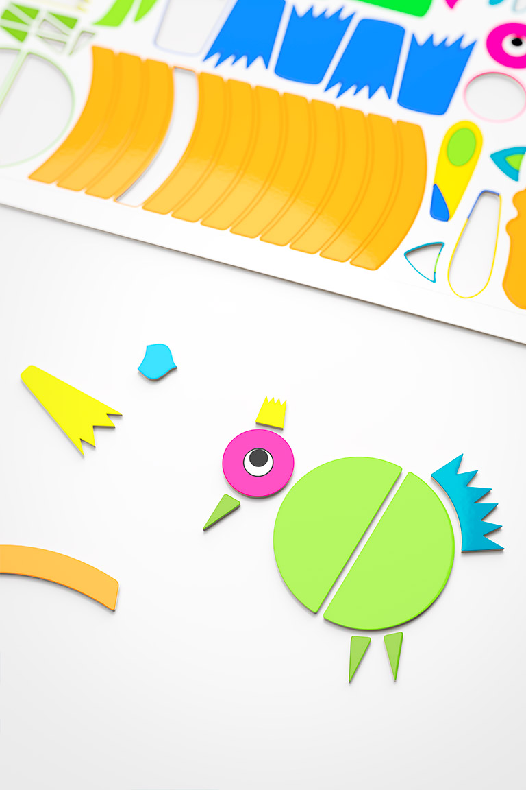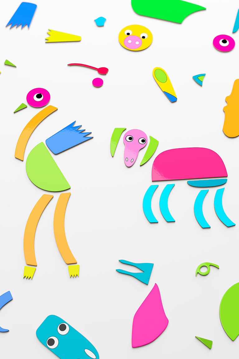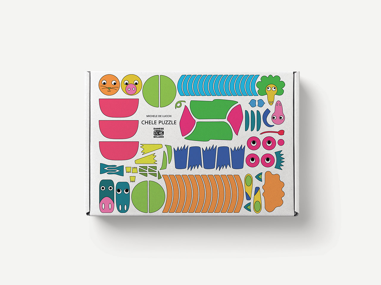 Chele Puzzle transforms Michele De Lucchi’s sketches into a composition game dedicated to the animal world. A set of stylized and colorful elements makes it possible to create real or imaginary animals by freely combining different anatomical parts. In continuity with Danese’s tradition of educational toys, the project fosters creativity, compositional freedom, and imagination through play. Made of thick, durable cardboard, it is designed for simple and safe use.