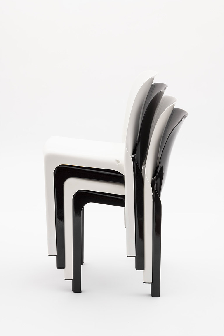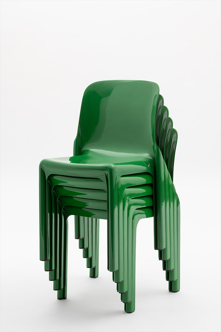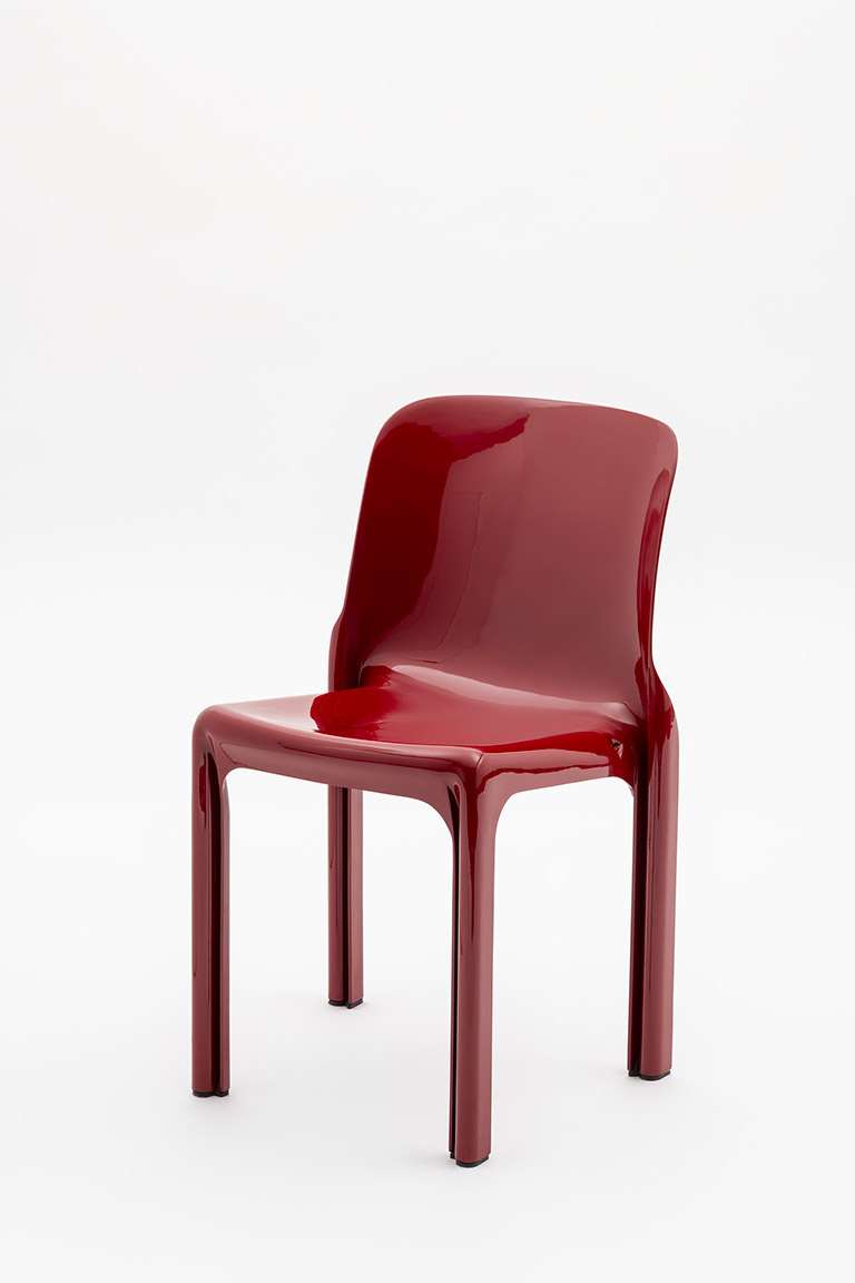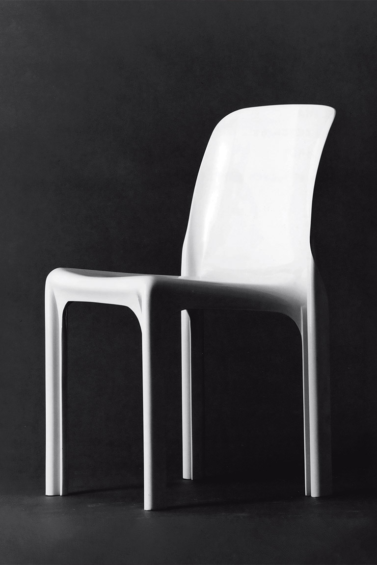 Designed by Vico Magistretti in 1966 for Artemide, Selene is one of the earliest examples of an industrially molded plastic chair, combining form, technology and production. Today it is reissued by Danese Milano, preserving its original design identity. Made as a single monobloc piece, it explores the potential of the material through soft, continuous lines. The backrest flows into the seat and legs, whose distinctive “S”-shaped section ensures strength with a minimal thickness of just 3 mm. Conceived for accessible industrial production, Selene reflects the idea of design for all: an iconic object balancing efficiency and formal clarity. Today it is produced using post-industrial recycled polypropylene reinforced with glass fiber, maintaining its original strength and durability. Lightweight, durable and stackable, Selene is a timeless chair.