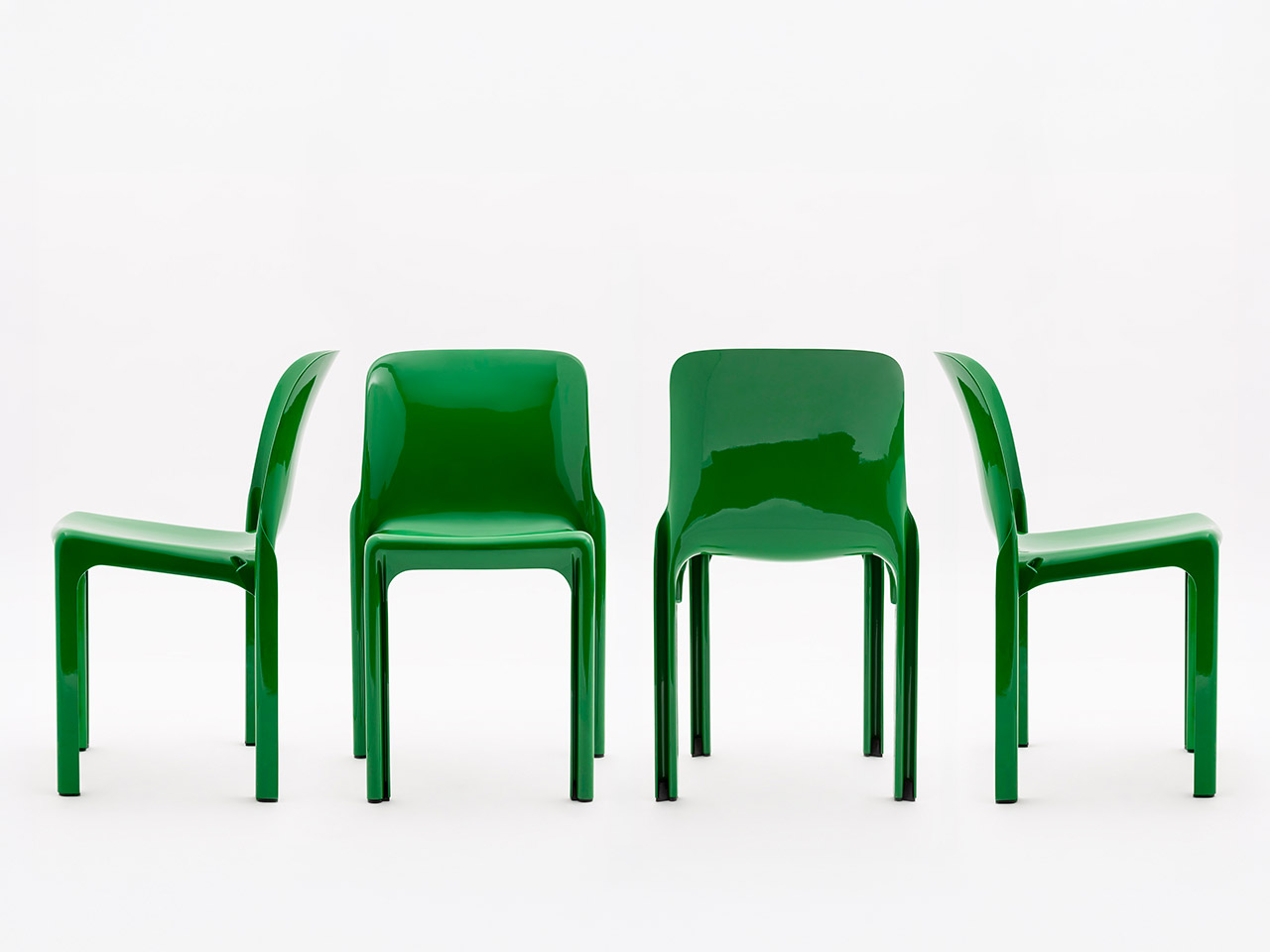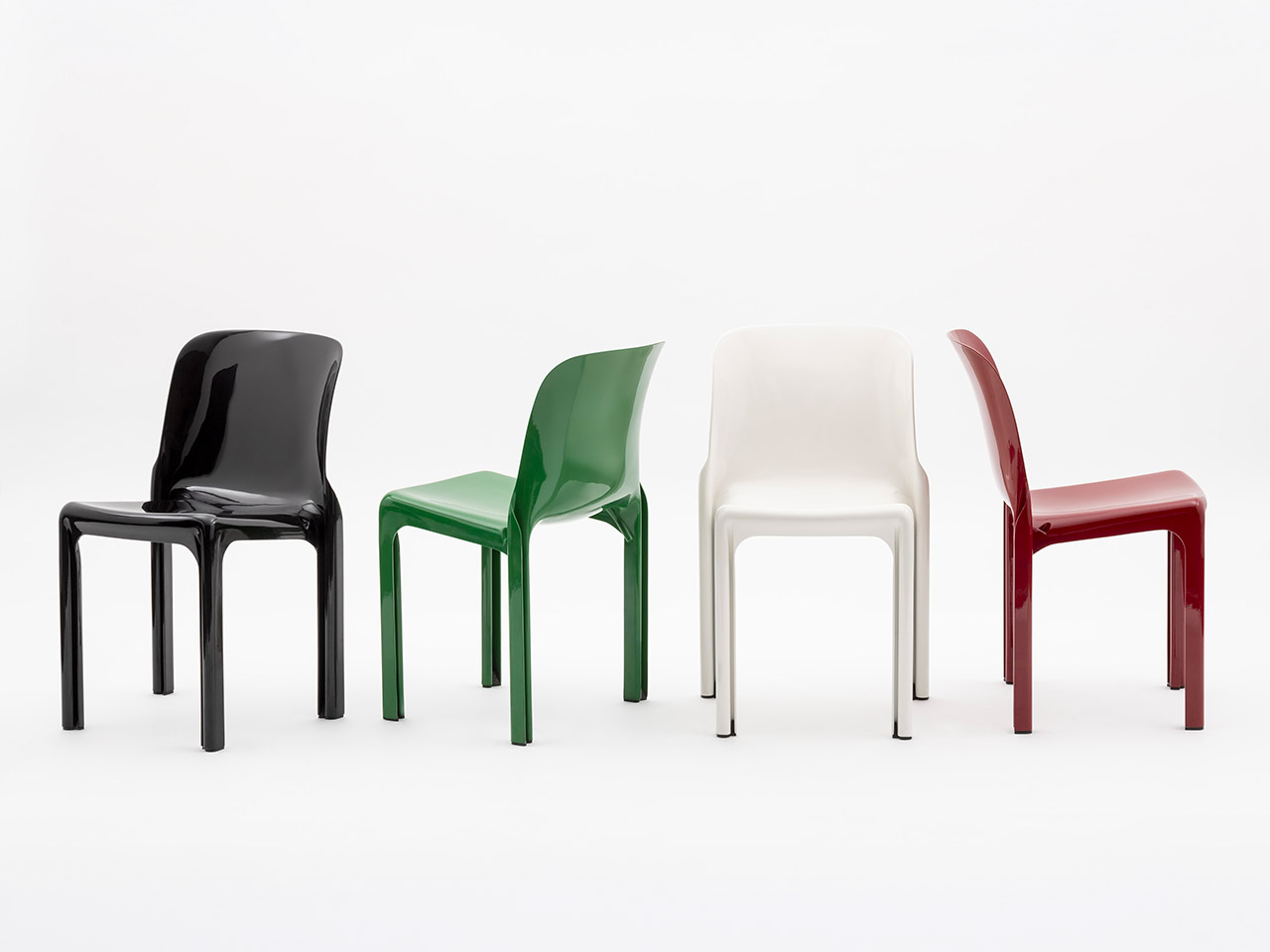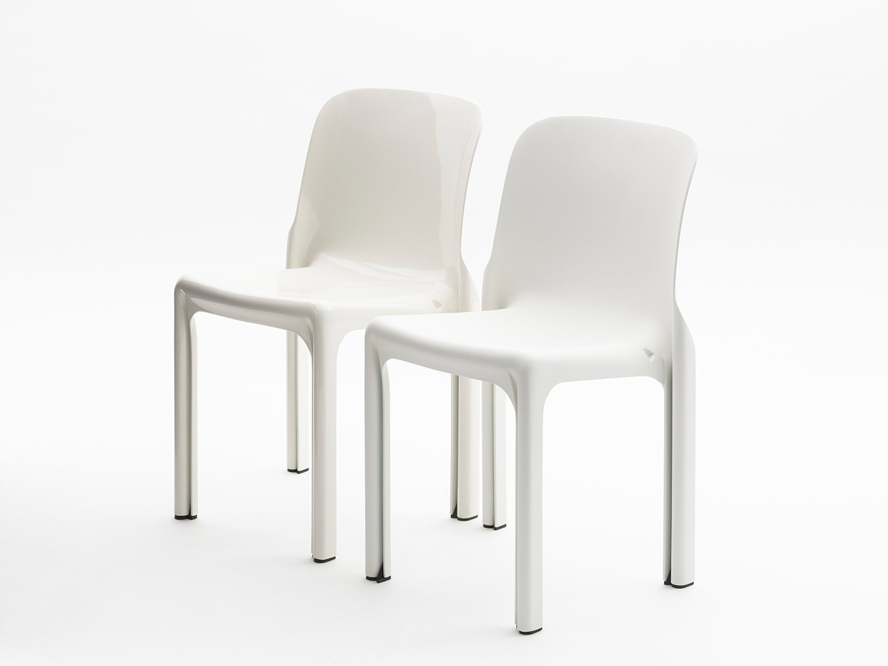Designed by Vico Magistretti in 1966 for Artemide, Selene is one of the earliest examples of an industrially molded plastic chair, combining form, technology and production. Today it is reissued by Danese Milano, preserving its original design identity. Made as a single monobloc piece, it explores the potential of the material through soft, continuous lines. The backrest flows into the seat and legs, whose distinctive “S”-shaped section ensures strength with a minimal thickness of just 3 mm. Conceived for accessible industrial production, Selene reflects the idea of design for all: an iconic object balancing efficiency and formal clarity. Today it is produced using post-industrial recycled polypropylene reinforced with glass fiber, maintaining its original strength and durability. Lightweight, durable and stackable, Selene is a timeless chair.